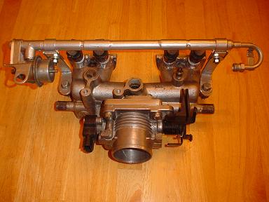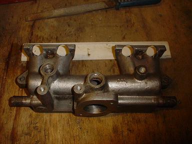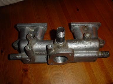 Manifold This manifold is from an American spec Midget 1500 using a 1.5" Stromberg. It is ideal for my purposes as it perfect for mounting a single throttle body. At 38mm the inlet is somewhat small but can be opened up quite a bit to fit the 55mm throttle body to be fitted. The injectors will be fitted into the manifold as close to the head as possible so that the fuel can be squirted direct into the ports on top of the valve heads. This should maximise the low speed throttle response. |