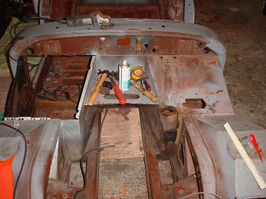 Conversion In order to convert from LHD to RHD it's necessary to change the footwell top. Here you can see that the original footwell top has been cut out. It's almost ready to receive the new top. |