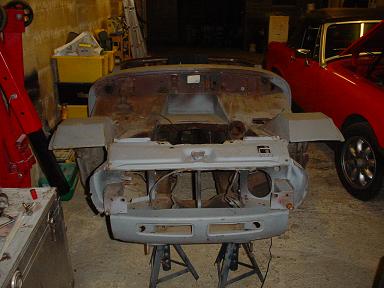One of the problems suffered by an old classic is rust, lots of it and advancing at different rates in different places. Many Midgets are now in a state where there is more rust than metal. The cure for this is either one of three options: (i) Buy all the rusted panels and weld them in place. (ii) Buy a completed heritage shell and swap everything across. (iii) Find another shell in good condition and swap everything across. Well, perhaps I was lucky but I got hold of a shell which had lived most of it's life in the Arizona desert so it is pretty rust free. The problem is that it is a left hand drive, hardly practical for British roads. Never mind, let's see what we can do with it.